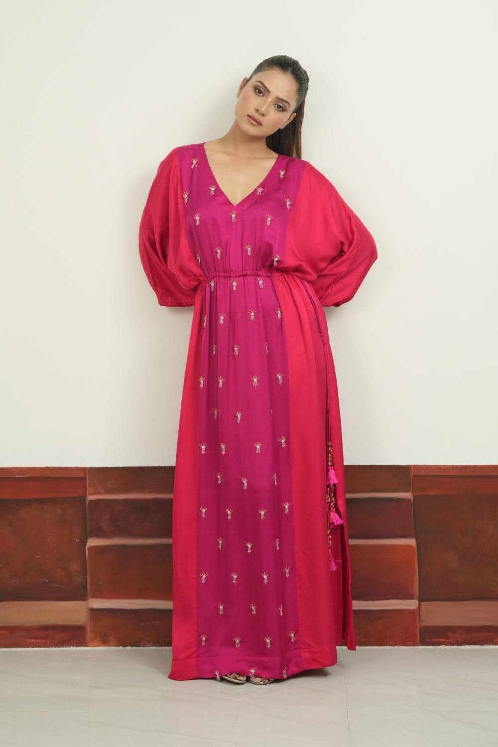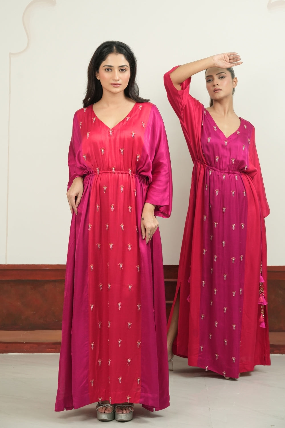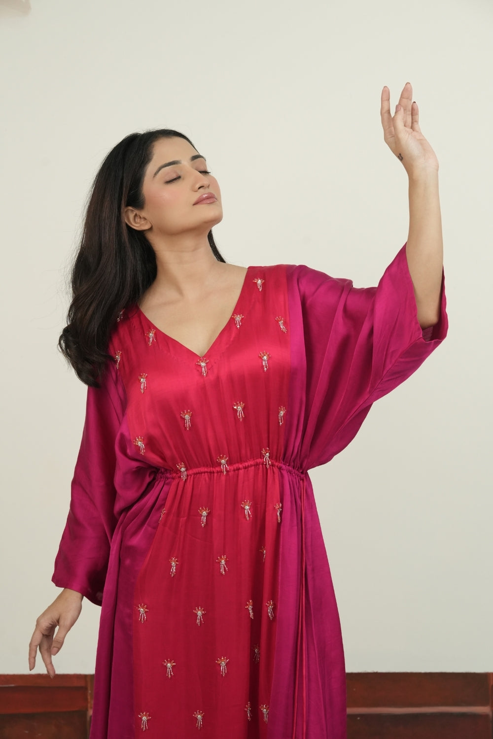 | Description | A timeless Linen satin kaftan ,with sophisticated hand embellishments oveall. |