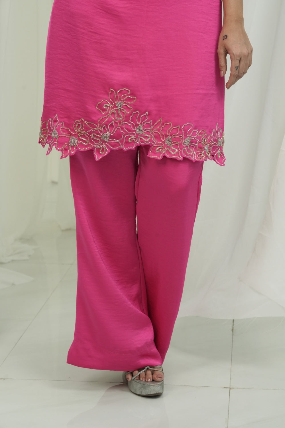 | Description | A striking hot pink co-ord with intricate embroidery at the hem, designed for comfort, confidence, and timeless appeal. |